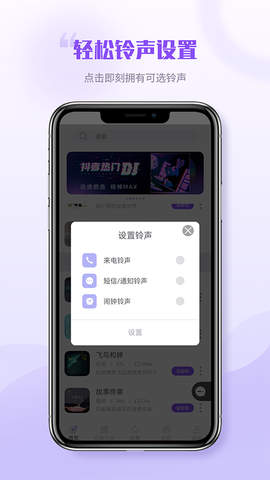 3、看到喜欢的铃声不用记代码不用输时间码,直接戳"设为铃声"三连击——设置速度比我丈母娘催婚还快!